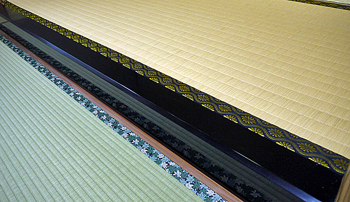 ○ ダイケン和紙畳 「銀白・IS」 畳縁 : 織部 ・ もみじ (高田織物) 本間サイズ 厚み : 58o 新調 16,000円 × 8帖 128,000円 ○ 床の間 ダイケン和紙表 「床龍・大目」 × 「高麗縁・金立枠」 ○ 襖紙張替 高級織物襖紙 「あかつき」 ○ 引手・ツキエス S-673 材質 : 「鉄・真鍮」 銀古美 秋菊透 金嵐座入 ○ 純楮障子紙 雲竜