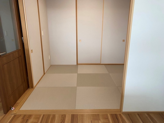○ ダイケン和紙畳 琉球畳 畳表 : 「清流 灰桜色」 畳床 : ダイケン型畳床 厚み : 25o 四畳半間 新調 価格 : 11,500円×9帖 103,500円 (税込 畳シート (床掃除後に敷き込み)400円/帖)