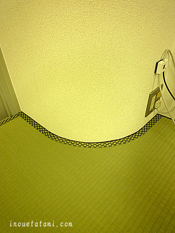 オフィス・カーペットに畳を敷き込む。 「い草」 熊本産畳表 上級品 畳縁 : コンフォート No102 (石田織布) 柱型切込み 変形 (扇型) 別途価格