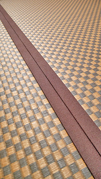 ダイケン和紙畳 「銀白 市松 02×03」 畳縁 : lent ラン No103ベージュ×No110チョコブラウン (高田織物) 艶出し加工綿糸・麻(リネン) 自然素材100% 高級畳縁 <別途価格> 新調 16,000円 × 14帖 224,000円 (税込)