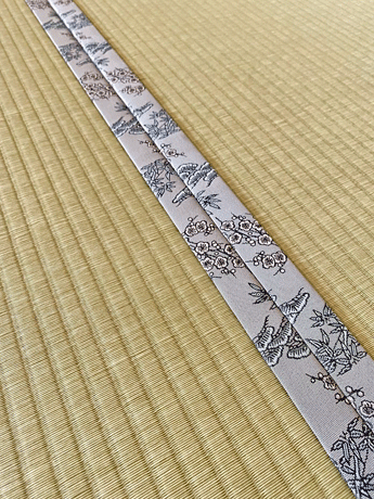 ○ ダイケン和紙畳 新調 畳表 : 銀白100A 銀白色 畳縁 : 花のエッセイ No300 松竹梅 (高田織物) 畳床 : ダイケン畳床 厚み : 30o 六畳間 新調 価格 : 15,500円 × 6帖 93,000円 (税込)