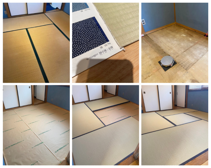 施工前・お部屋の採寸・製作・床掃除後に畳シート敷き込み・納品 ![]() |