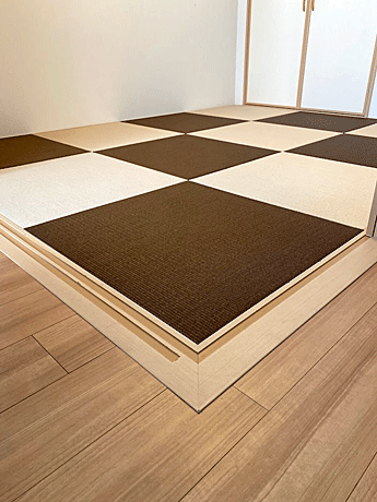 ダイケン和紙畳 琉球畳 「清流 ・ カクテルフィット」 No22(栗色×胡桃色mix表) × No17(灰桜色×白茶色mix表) 六畳間 厚み : 28o 新調 11,500円 × 12帖 138,000円(税込) 畳シート 400円/帖