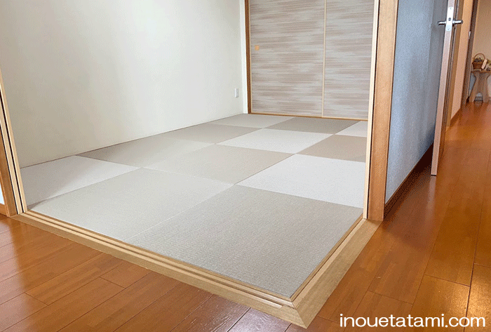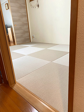 ○ ダイケン和紙畳 琉球畳 「清流カラー 灰桜色」 ダイケン畳床 厚み:30o 六畳間 新調 11,500円 × 12枚 138,000円 (税込) ○ 襖紙張替 ルノン ・ 凛 rin No310 丈長サイズ 4枚 幅広サイズ 押入 2枚 幅広サイズ 天袋 2枚 引手 新調 ビドー (樹脂製)
