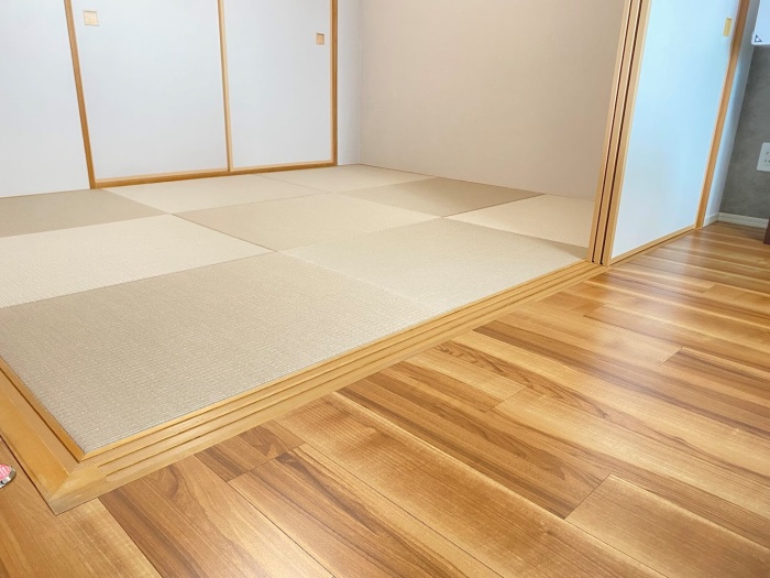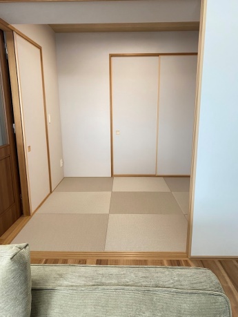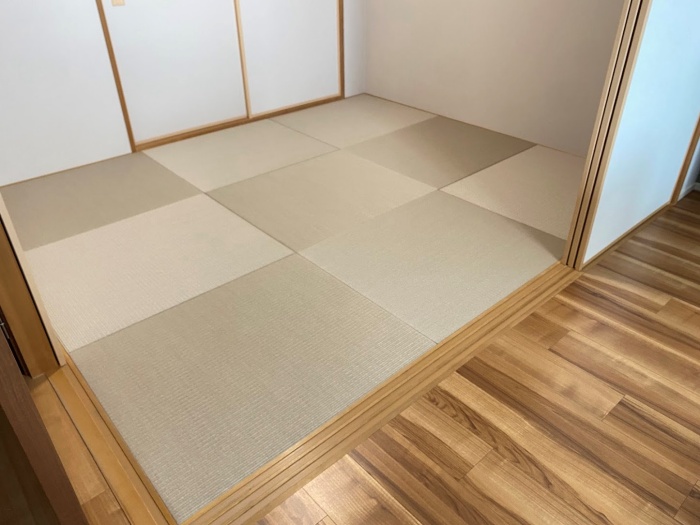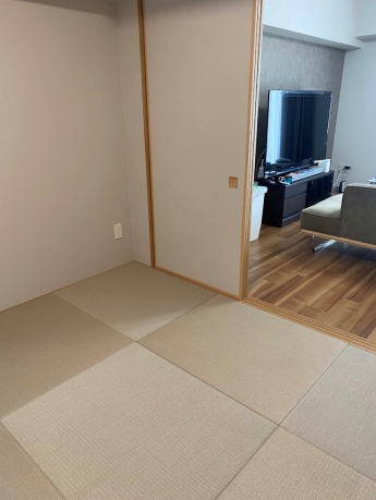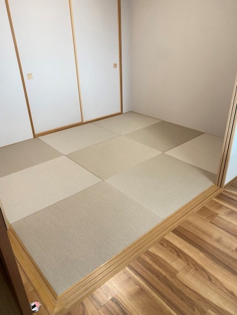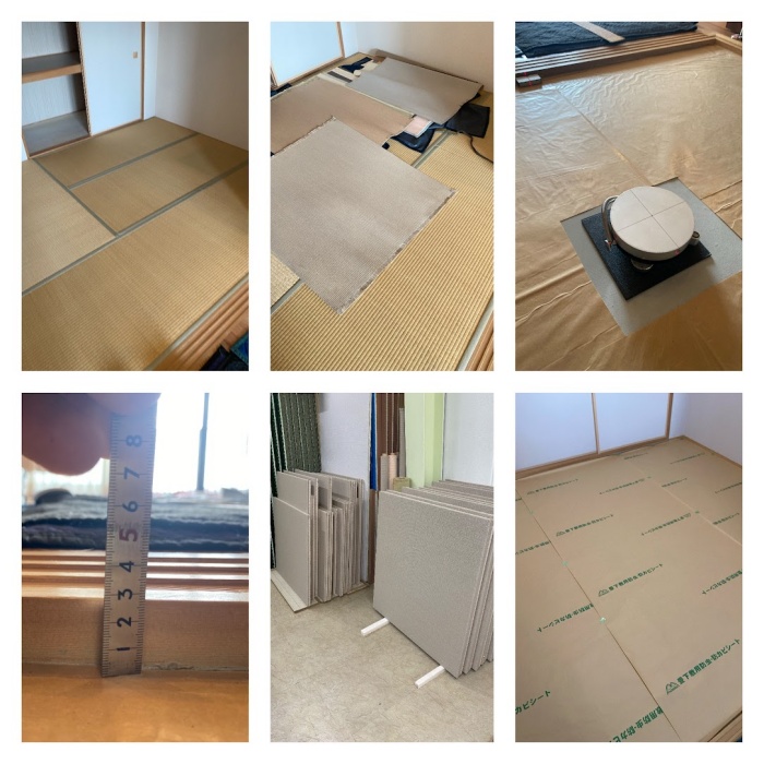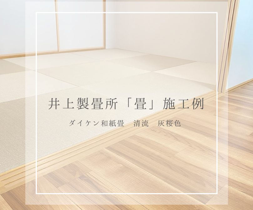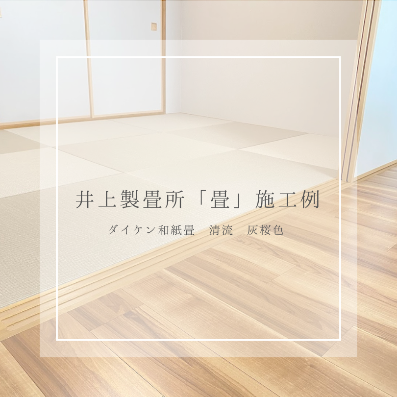 ○ ダイケン和紙畳 琉球畳 畳表 : 「清流 灰桜色」 畳床 : ダイケン型畳床 厚み : 25o 四畳半間 新調 価格 : 11,500円×9帖 103,500円 (税込 畳シート (床掃除後に敷き込み)400円/帖)