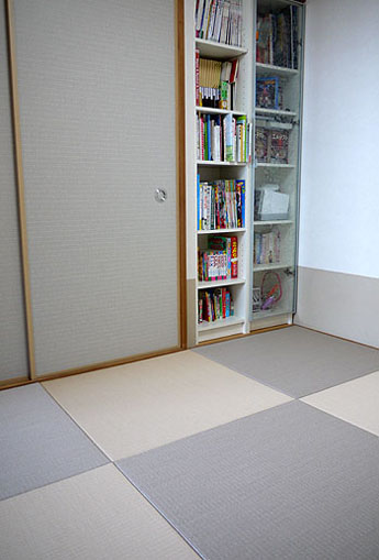 ○ ダイケン和紙畳 琉球畳 カラー清流 灰桜色×白茶色 四畳半間 仕上り厚み:30o 表替 8,500円 × 9帖 76,500円 ○ ふすま張替 ルノン 「凛 Rin」 霰 Arare No320 押入れ張替 (裏面・雲華紙張り)